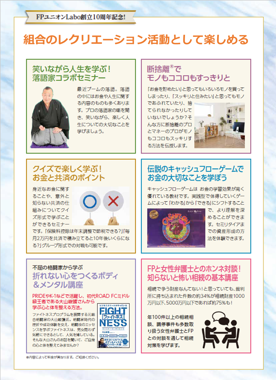 ④組合のレクリエーション活動としても楽しめる、FP以外の専門家とのコラボセミナー!
