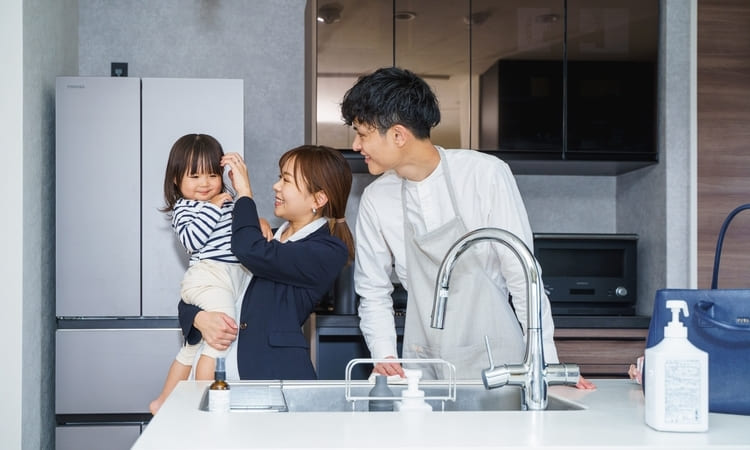 保育園に子ども送る、家事 -