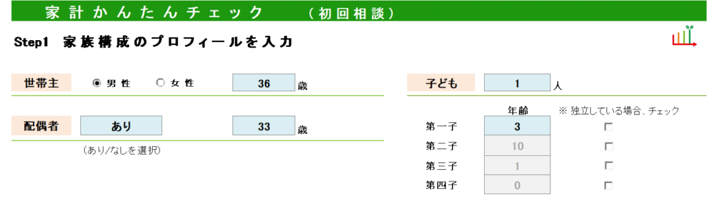 今回は、弊社開発の「家計カンタンチェック」ソフトを用いての初回相談の一部をちょっと覗いていただきたいと思います。