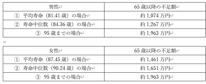 ●寿命中位数をもとに不足額を試算すると