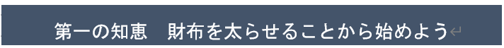 第一の知恵は、「財布に10枚のコインを入れたなら、使うのは9枚まででやめておく」という非常にシンプルなものです。