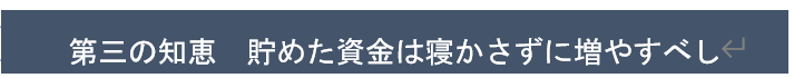 第三の知恵は、「貯めたお金はしっかりと働かせる」こと。つまり投資です。