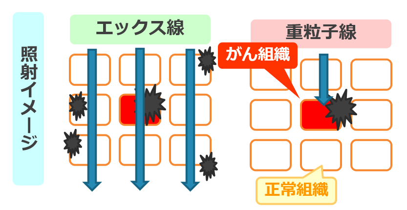 放射線療法のなかでも、エックス線と重粒子線についてカンタンに解説します。