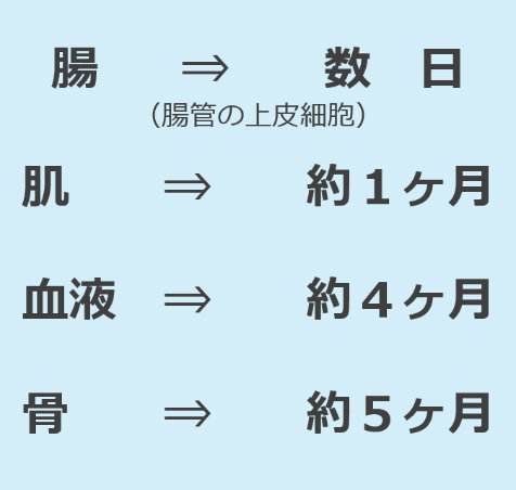人間は約60兆個の細胞からできていると言われており、私達の体は新陳代謝により、毎日、古い細胞は新しい細胞に入れ替わっています。