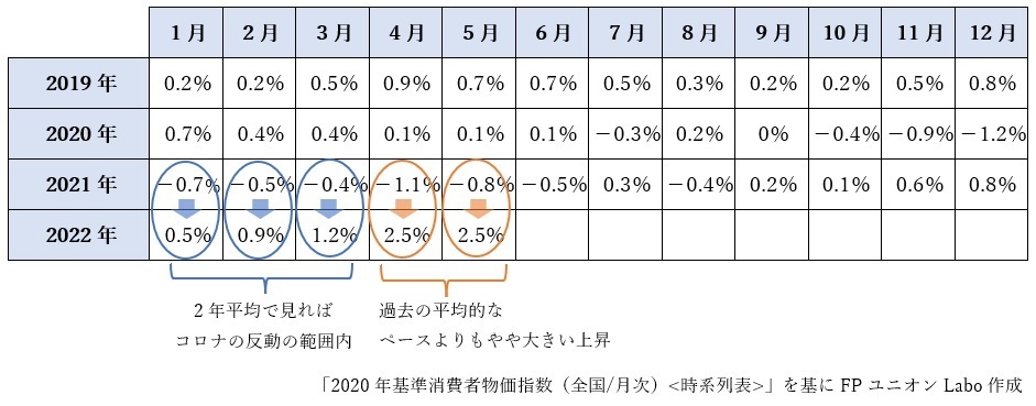 2022年4月、5月は2.5%と上昇率が大きくなっています。